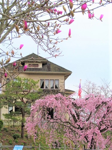 枝垂れ桜は満開