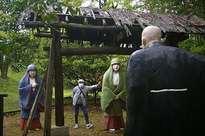 ![]() そのため、園内にはいたるところに親鸞聖人のご旧跡をあらわした塑像があります。 コンクリート像作家の浅野祥雲の作品がある場所はほかに、犬山の桃太郎神社、関ケ原ウォーランドです。 |