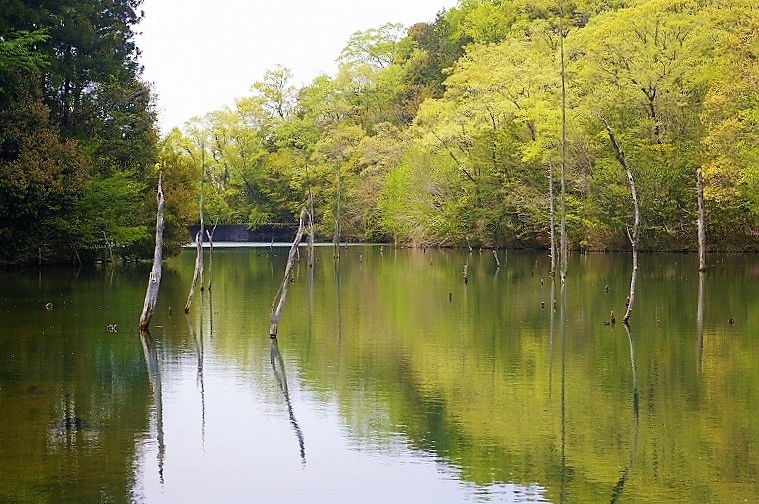 ![]() 水没して枯渇した立木がのこって、 上高地の大正池のようです! |