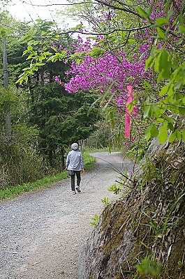 ![]() 里山サテライトに戻りお菓子で空腹(Pを間違え食べ物は車の中)をしのぎ車道を戻る |