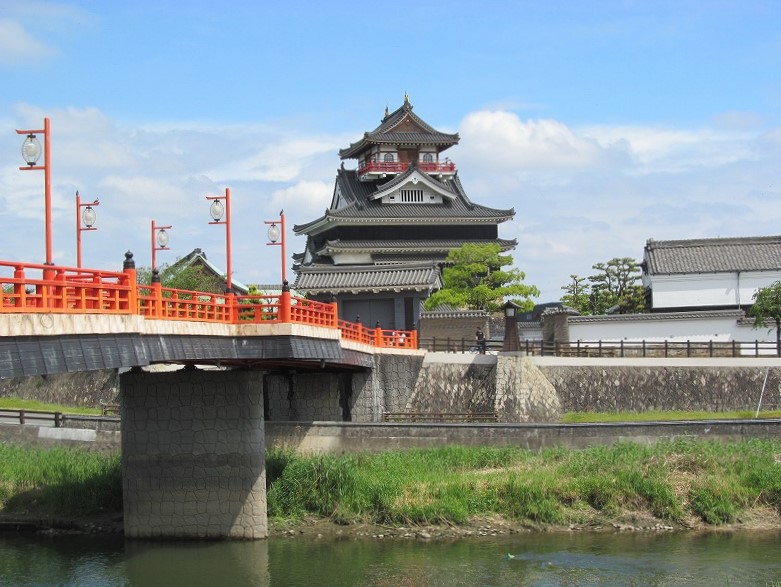 ![]() 平成元年(1989年)に再建整備された「清洲城天主閣」から大手橋の架かる五条川を隔てた対岸にあるのが清洲古城跡 |