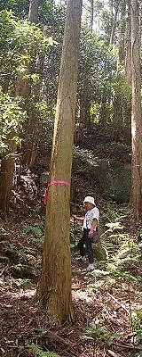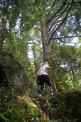 ![]() モミ.の大木を回りこみ |