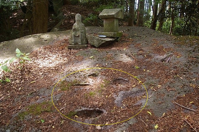 ![]() 八丈岩の上に、化猫の足跡を見付けました。 |
