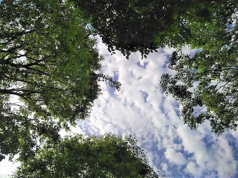 ![]() 食後は仰向けにごろり・・・木々はそよ風に揺らめき、雲はゆっくりと動いています。 |