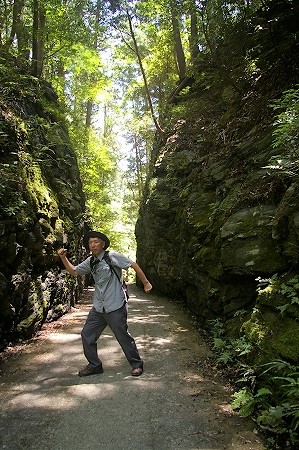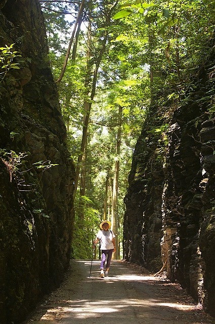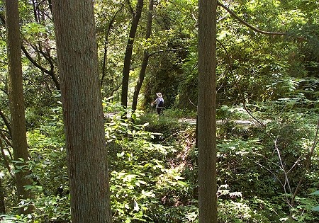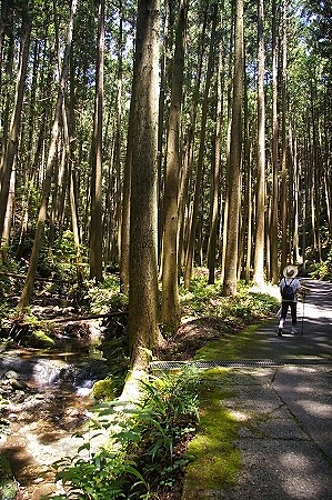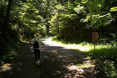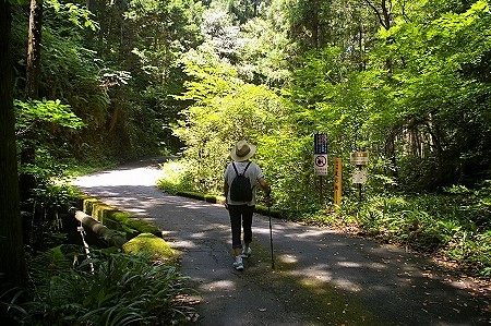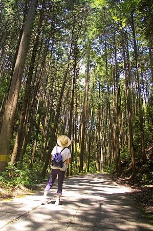 ![]() 林の中に入ると涼しくなり、街道もなだらかで快適なウォーキングと喜んでいます。 |