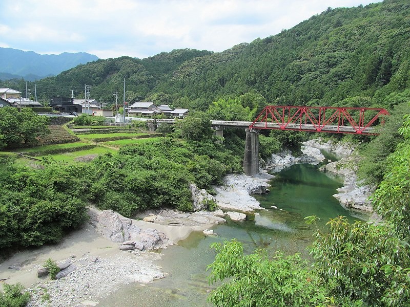 ![]() ベンチがないのでここでおにぎりタイム 赤桶橋が見えてきました |
