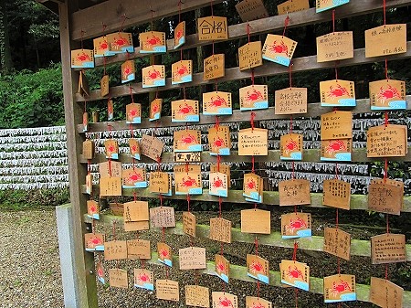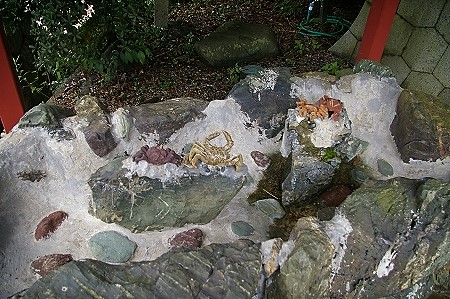 ![]() 近江国の多賀大社の社殿が焼失し6年が過ぎた1621年、正元山伏が近江国の多賀大社からイザナギノミコトの身体を運び創建した。 険しい道のりを、正元の背に一匹のサワガニが乗って、身体と常滑まできた。カニの後利益か水揚げも大漁御礼!で、蟹の絵馬あり! |