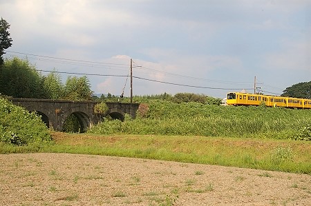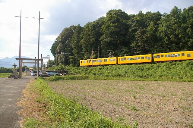 ![]() 三重県北勢線:するとタイミングよく列車がやってきた |