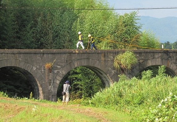 ![]() 全国に数多く存在する眼鏡橋の中でも、大変珍しいコンクリートブロック製です。 |