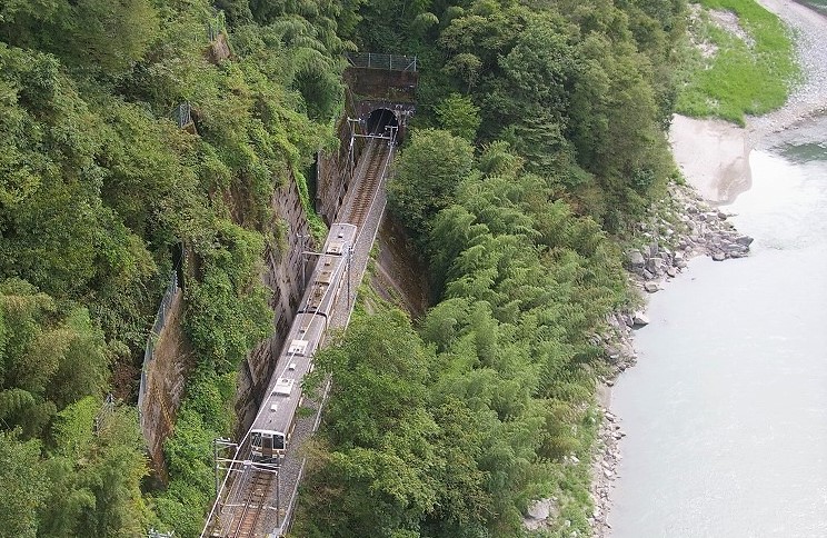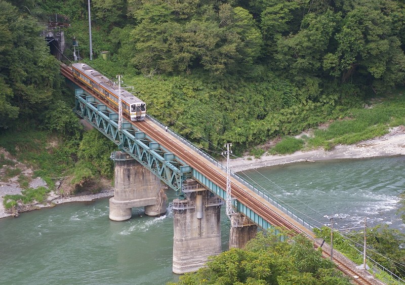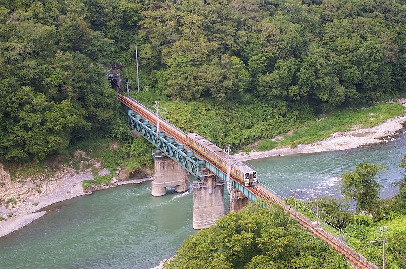 ![]() つつじ橋から急いで引き返し14:20鳳来寺方面からの列車 |