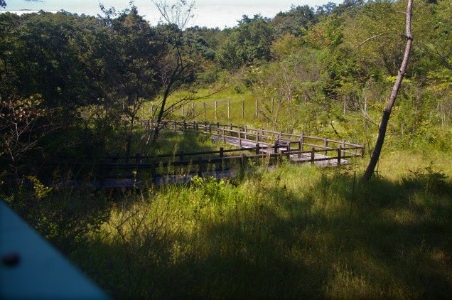![]() フェンスに囲まれた特別な湿地帯は決められた10月の日曜日に開放! 白っぽいのがシラタマホシグです。 |