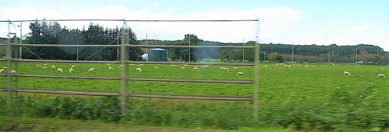 ![]() 空港から恵庭市に向かう===羊の群れに北海道を感じる |