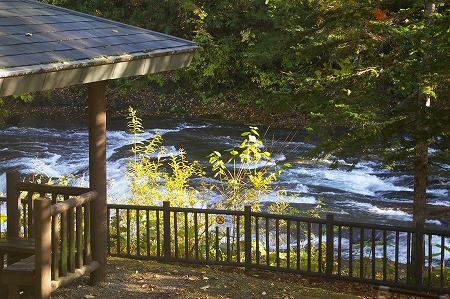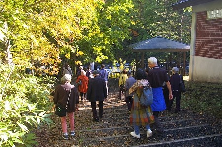 ![]() 最初の観光地『恵庭渓谷』 バスから降りると肌寒いです |