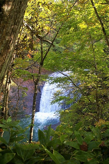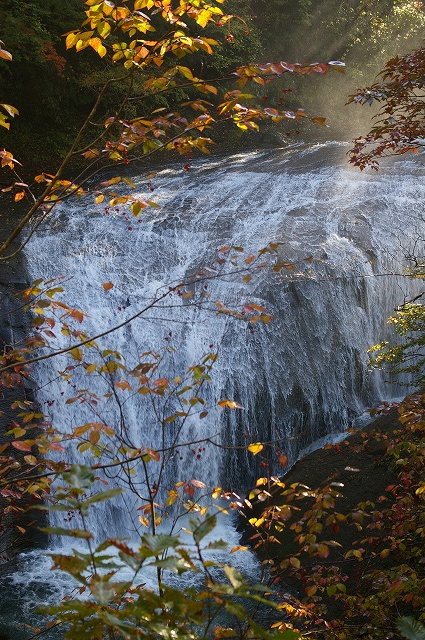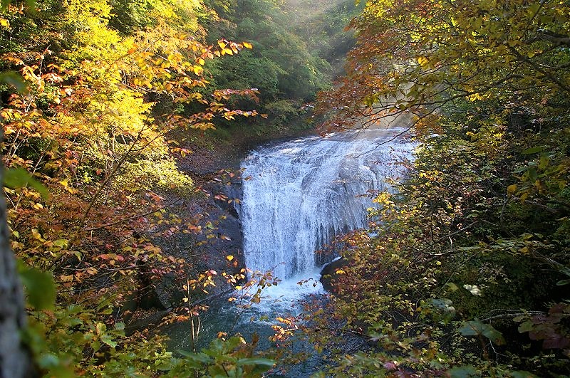 ![]() 白扇の滝は、高さ15m幅18mで真っ白な扇を広げたような優美な姿! |