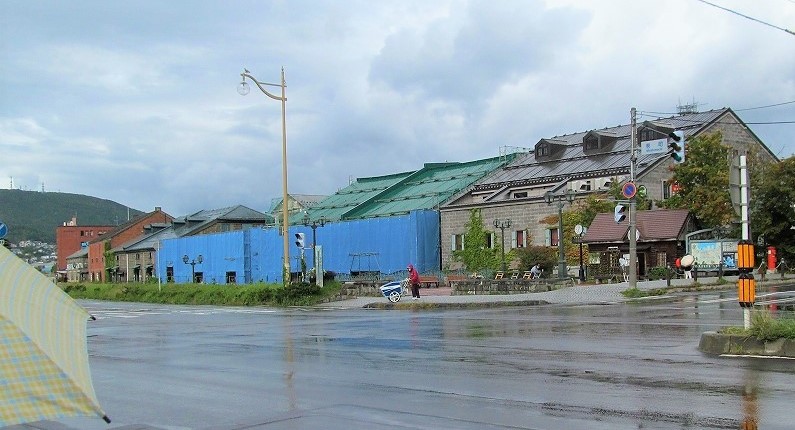 ![]() 団体さん定番の撮影スポットも雨で中止(修理のブルーシートもひんしゅく) |