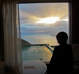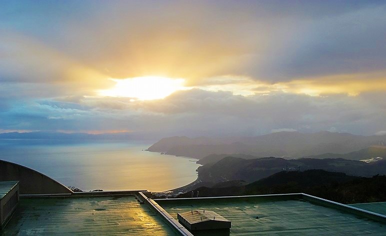 ![]() 内浦湾側の雲にじゃまされ夕陽が見えません |