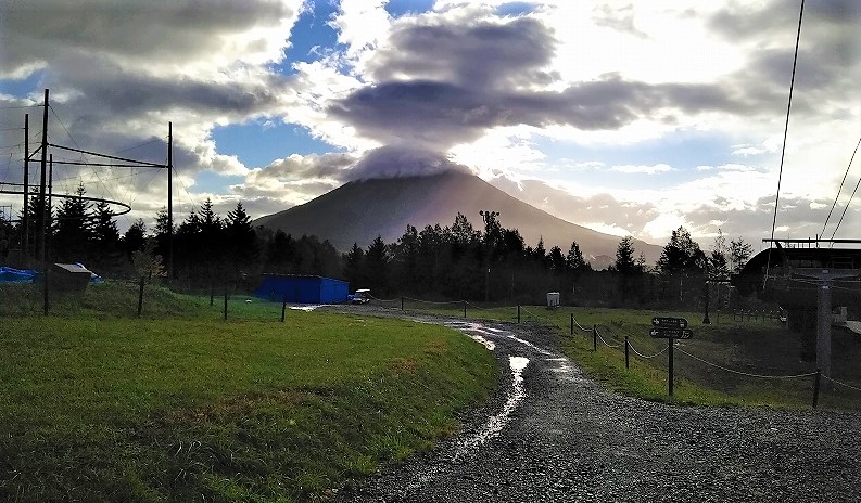![]() 7:00 食事前の散歩・・・羊蹄山は今日も傘をかぶっています |