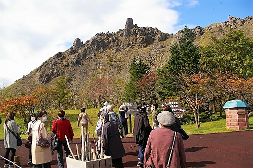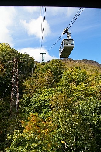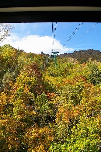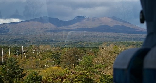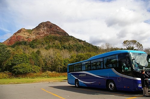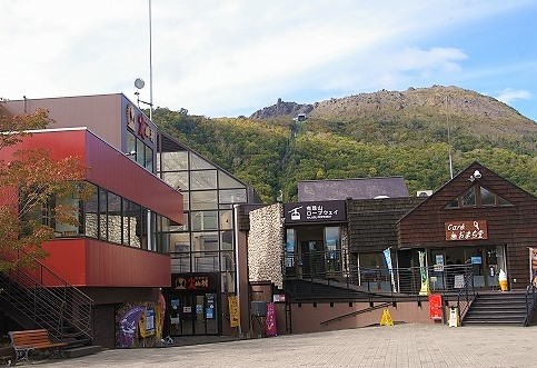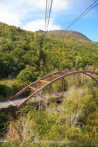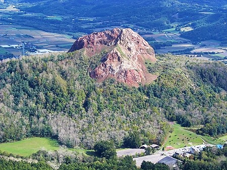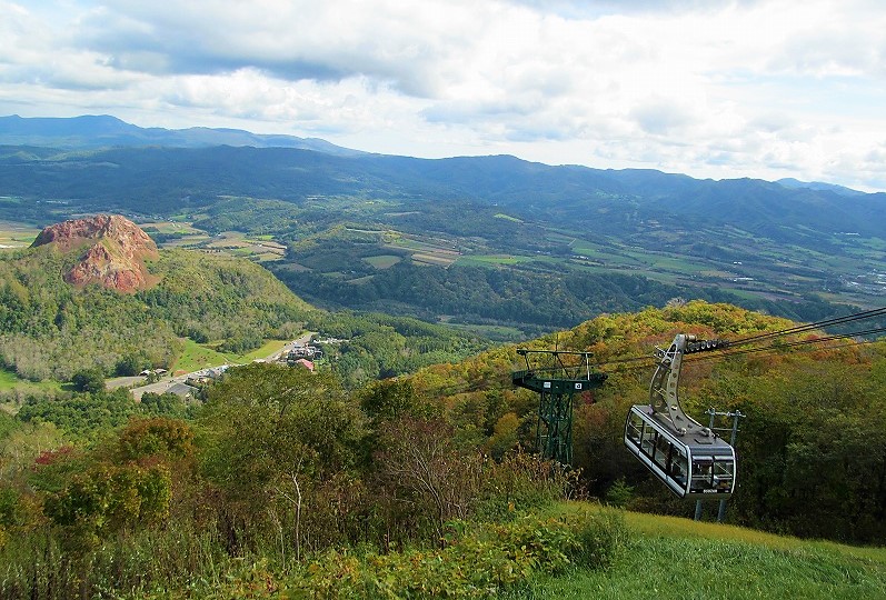 ![]() 昭和新山(噴煙を上げた赤い岩肌が特徴)を眺め、有珠山ロープウェイに乗り換え(隣のクマ牧場へは行きません) |
