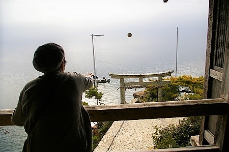 ![]() 願い届けと「エイッ!」 鳥居めがけてまっしぐら・・・ |
