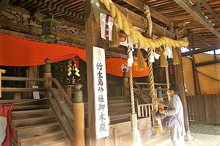 ![]() 『国宝竹生島神社』 豊臣秀吉が伏見桃山城の建物を寄進した |