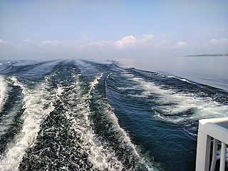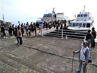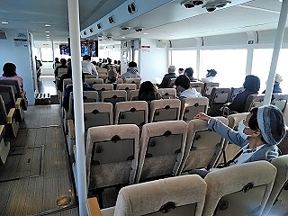 ![]() 密の乗船待ちから離れ最後に乗り込む(船内は空いています) |