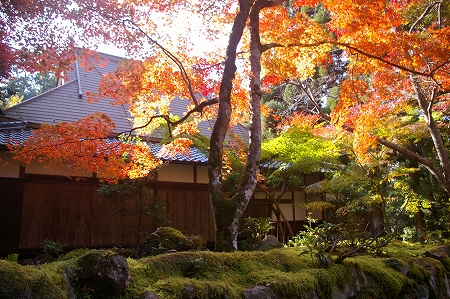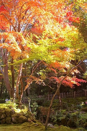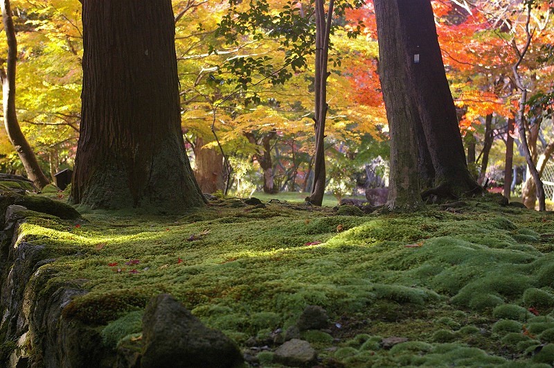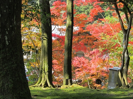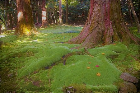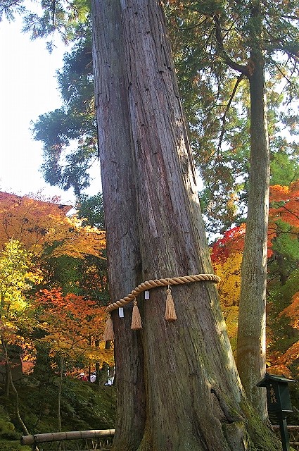 ![]() 『夫婦杉』 足元の苔が紅葉をより引き立たせています |