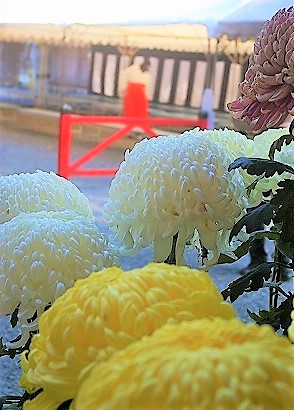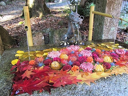 ![]() 春日岡花手水 今日は神様にお供えする茶会だそうです |