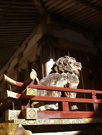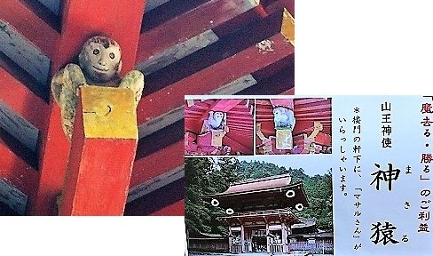 ![]() 西本宮楼門軒下の四隅で木像の猿が楼門を守っています。 |
