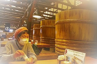 ![]() 盛田味の館 170年前の醸造蔵を改装し、館内には杉樽を並べて、どっしりとした重厚な雰囲気を演出しています。 |