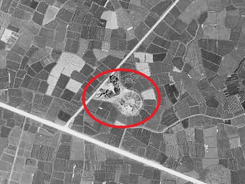 ![]() 1961年空中写真では前方後円墳の形が良く残っています 右)H.4年9月作成 |