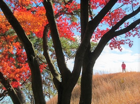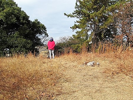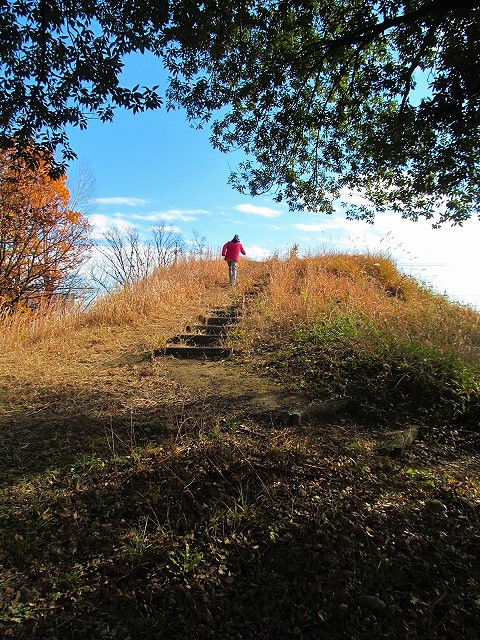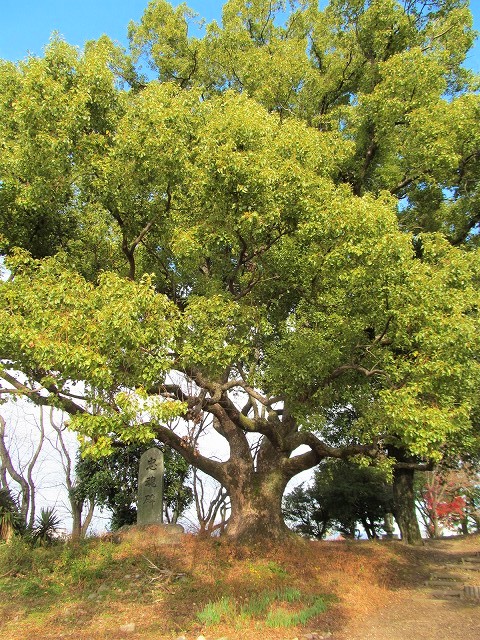 ![]() 左)巨木のクスノキが前方部に置かれた忠霊碑と古墳を守る 登るとたたりがあると言われていたのに階段が造られています |