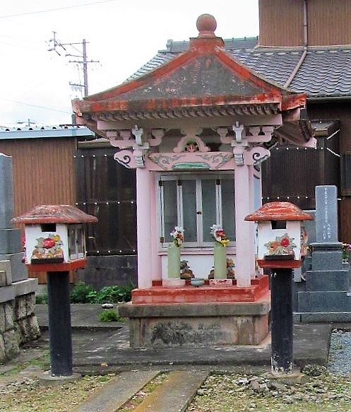 ![]() 本堂と時代を感じさせる石仏が安置 |