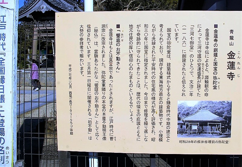 ![]() 源頼朝の命によって建立された三河七御堂の一つと伝えられ、阿弥陀三尊像が安置されています。 ![]() |