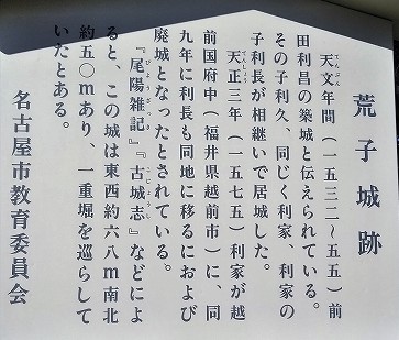 ![]() 「荒子」という地名には野山を開拓した場所という意味合いがあるそうです。 |
