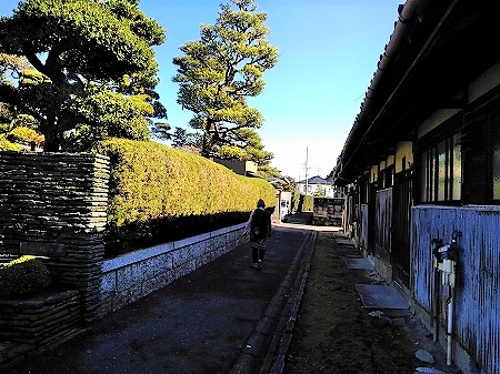 ![]() 帰りは古道のような細い路地をくねくね歩く事250mで戻る! 門前の案内板を見直すと「南西へ」の文字を見つけた。 |