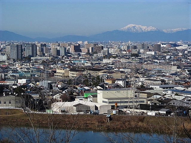 ![]() 希望の鐘より足元に庄内川、遠方には鈴鹿山脈・養老山脈、伊吹山が見渡せます。 |