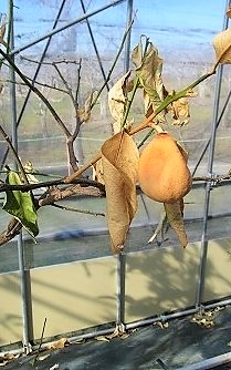 ![]() 時季外れのハウスに入ったら、干し柿のようなレモンがへばりついていました。 旬のレモン⇑ |