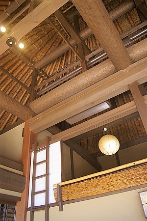 ![]() 茅葺の屋根、竹を荒縄で結ぶ昔ながらの技法・・・土壁や土間! |