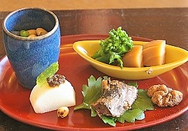 ![]() 先附、箸休、造里、八寸、焼物、御飯、菓子 |