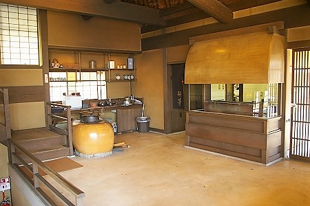 ![]() 昔ながらの土間には「かまど」には薪がくべられ、お湯を沸かしていました。 ひな壇、囲炉越しには清流が流れる。 |