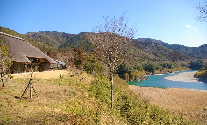 ![]() 清流宮川の田園風景に建つ「日本料理 鄙茅屋ひなかや」 |
