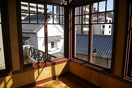 ![]() ガラス張りのせりだした部屋からは蔵が・・・ |