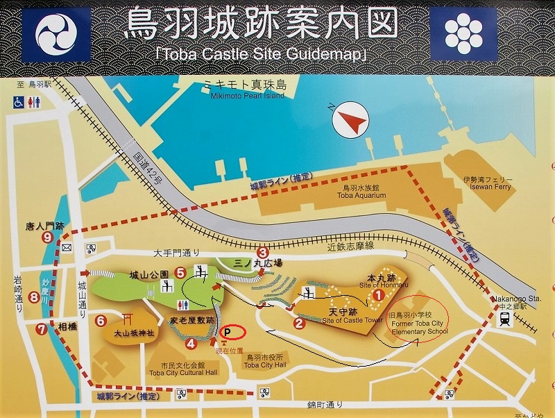 9:30自宅>11:45〜1:45風早の里>2:45〜3:45鳥羽城址>4:00〜夕食(鳥羽港)>鳥羽国際ホテル
