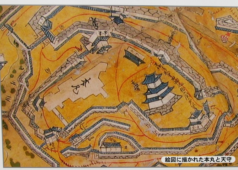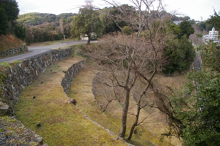 ![]() 三の丸を上から眺めると、石垣が段々になっていました。 |