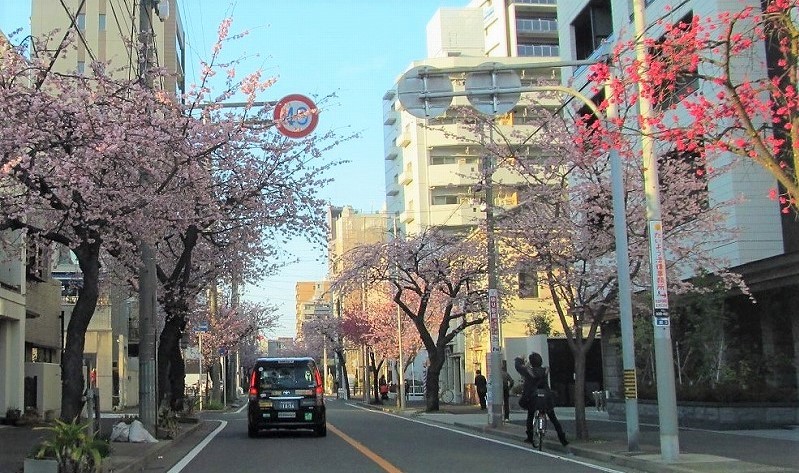急いで帰り、名古屋市東区飯田町に早咲きの桜を見てきました。 |