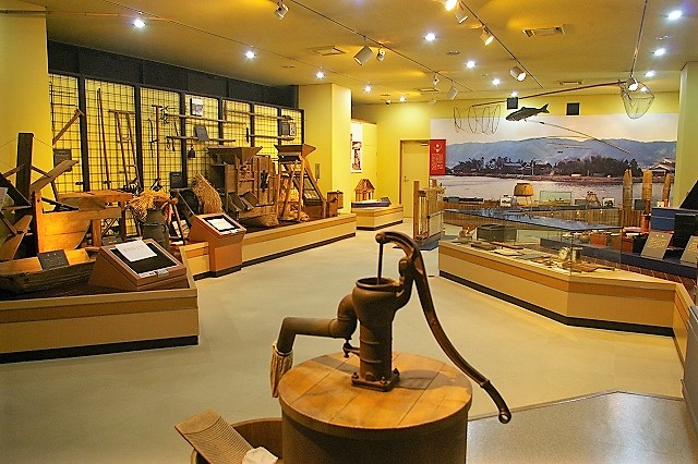 ![]() 2階では輪中の歴史や生活文化について実物や模型で学ぶことができます。 |