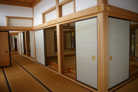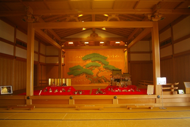 ![]() 高須藩松平氏の御館の一部、玄関から書院の間の主要部分に能舞台と50畳の広間 が復元されています。 |