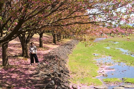![]() 道の駅「月見の里」で野菜と果物を仕入れて・・・ Pに咲く八重桜を見付けこれから行くだんだん公園に期待! |