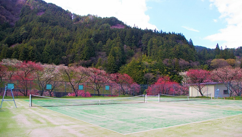 ![]() 左奥に見えるテニスコートでの満開時でのテニスが懐かしい |