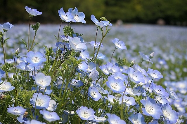 ![]() カモが空から飛来に驚かされ、三週連続のネモフィラ鑑賞です。 |